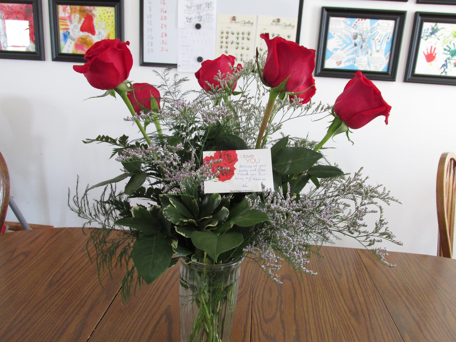 We tend to do the same thing each year on Saint Valentine's Day. I figure why change a good thing. This year hubby decided to add some variety by surprising me with some roses. I was quite surprised and thankful for his thoughtfullness.